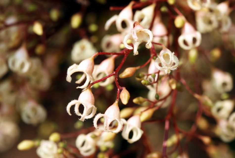 圓錐形花序,腋生或頂生,花為粉紅、淺紫紅或白色,大部分是雄性花,兩性花極少。果為木質之蓇葖果,形如鳳眼,故又稱鳳眼果,成熟為紅色。每果有種子2~4粒,成熟時呈暗紅至黑褐色,種仁黃色,形如蛋黃,常被當為素蛋黃使用。果實種仁富含澱粉、脂肪,可以生炒、水煮、焙烤等方式食用。