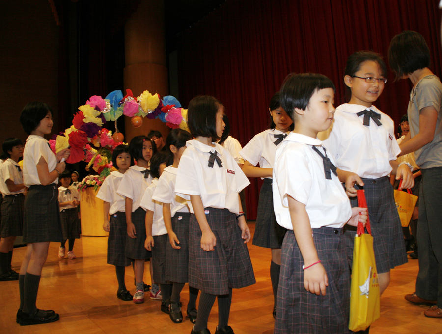 小一新生們於9/2(四)開學典禮時,在老師的引導之下,通過「刺蔥」、「蘋果」、「芹菜」三道門,祝福新生們都能獲得「聰明」、「平安」、「勤快」,再從六年級的學長姐接過此福袋。希望小一新生收到這份禮物後,從此開啟閱讀視野,也祈願往後的學習能更加-棒、棒、棒!